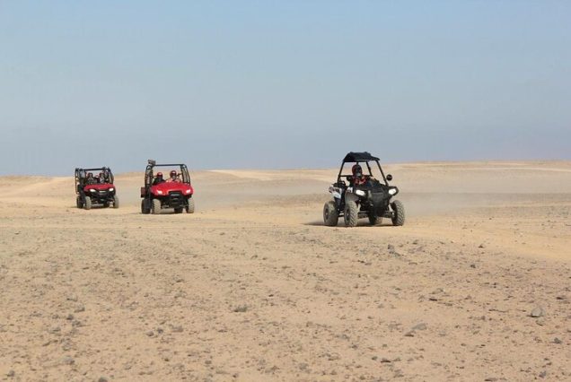 Experience an exciting jeep safari through the desert from Hurghada. You will be picked up at your hotel and driven to the Sahara. Enjoy your time away from the hustle and bustle of the big city and be amazed by the wonders of the desert. Visit a Bedouin village, where you have the opportunity to experience the culture and daily lives of the inhabitants. You can also enjoy a camel ride through the desert sand. Admire the breathtaking views and watch the beautiful sunset over the desert.